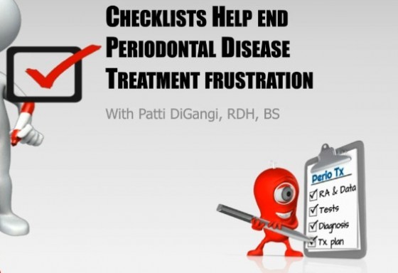 We used to think we could or should remember everything we needed to know to practice. With the explosion in scientific literature, we need to finally give up on even thinking this is possible. SRP with micro-ultrasonics and the latest instrument technology, antimicrobials, locally administered antibiotics, and referral to the periodontist are all options in treating periodontal disease yet the patient wants ‘just a cleaning.’ This can lead to frustration where you feel really unsure about what to do. All pilots have been taught the importance of using written checklists. Establishing a written checklist/protocol for your individual office, reminders of key steps that can get forgotten or overlooked, can help develop the most effective treatment/flight plan for our patients AND help our patients to want and accept treatment.